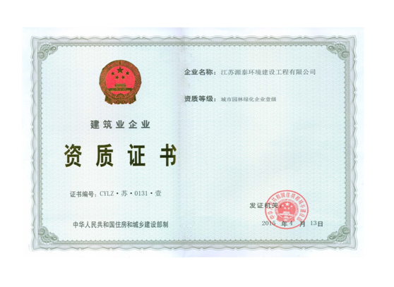 近日,国家住建部核准了2015年城市园林绿化一级资质企业名单,经过层层筛选,我集团控股子公司江苏源泰从全国众多园林企业中脱颖而出,荣获城市园林绿化一级企业资质。该资质是国家城市园林绿化最高资质,这为我集团在今后的发展中提供了更好、更广的平台。