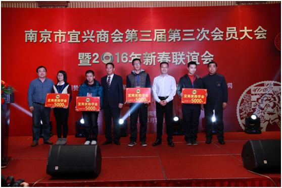 (向宜兴籍大学生颁发“宜商奖助学金”)